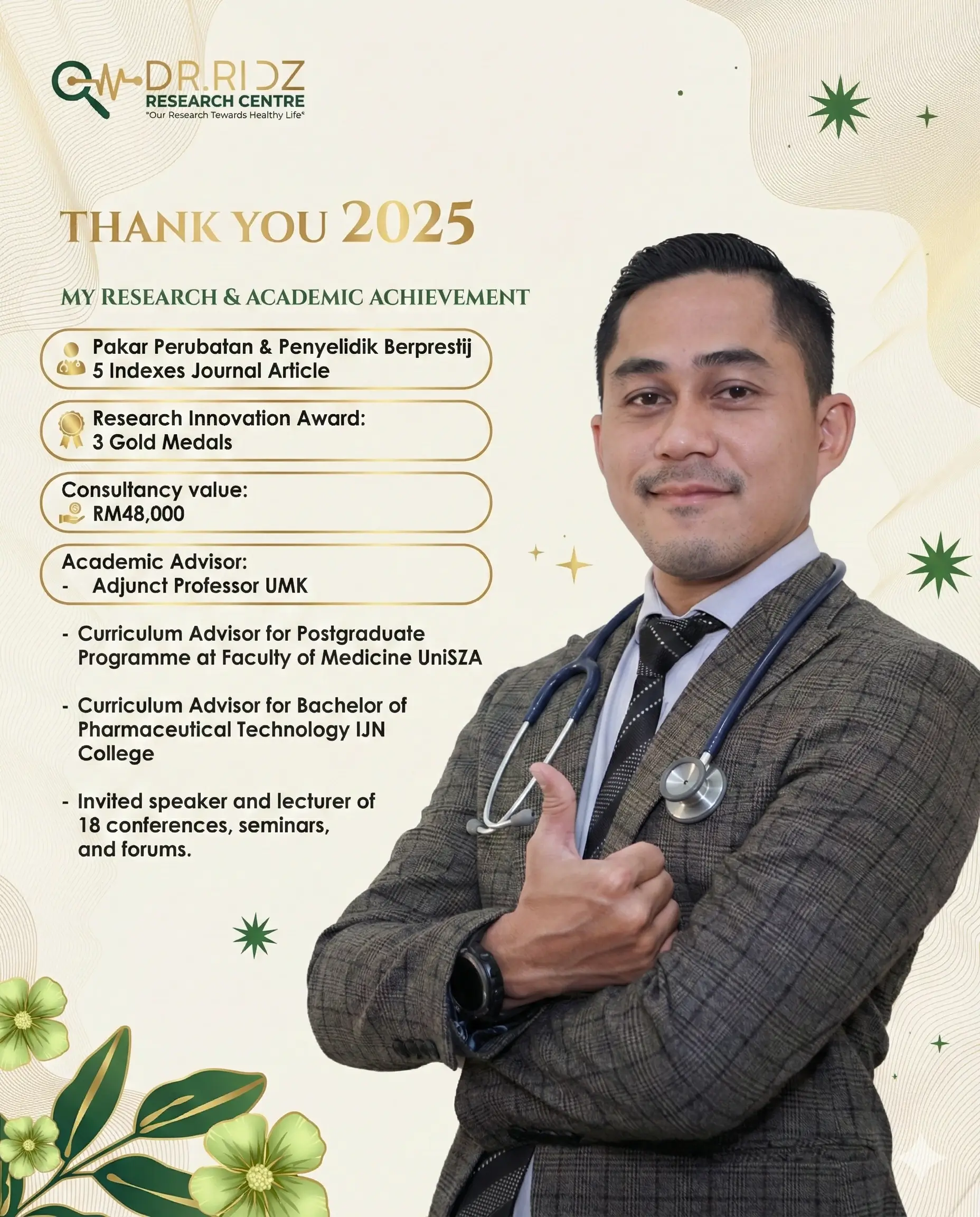 Diterajui oleh kepakaran akademik sebagai Adjunct Professor, membawa standard penyelidikan perubatan ke peringkat global.